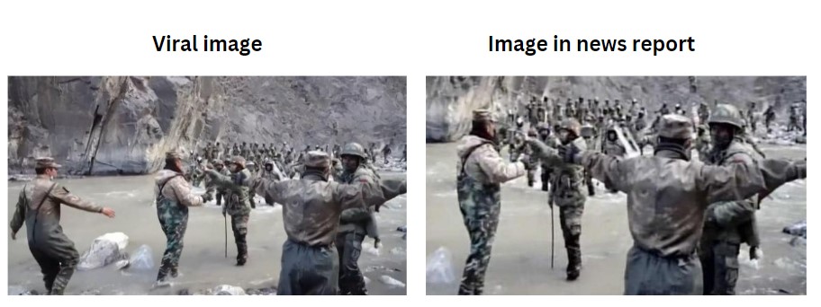 Displaying a cropped version of the viral image, the report stated, “Dramatic footage released by Chinese state media purportedly shows deadly clashes between troops at the Indian border last year — a rare insight into violence at the tense, remote frontier.”