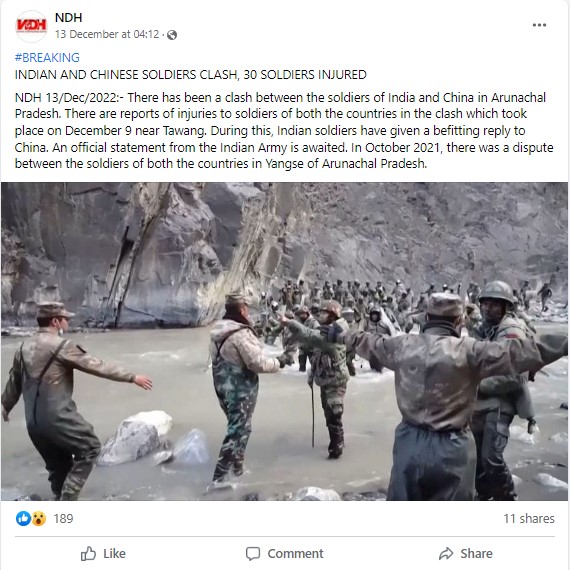 Discussions around the December 9 Indo-China clash in Arunachal Pradesh continue to dictate social media trends in India, with users sharing many unverified images and visuals allegedly showing the standoff. One such image is being widely shared online allegedly showing a confrontation between the Indian army and PLA in Arunachal Pradesh.