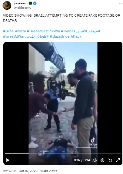 Footage from the making of a Palestinian short film shared as evidence of Israel creating fake videos amid the ongoing conflict.
