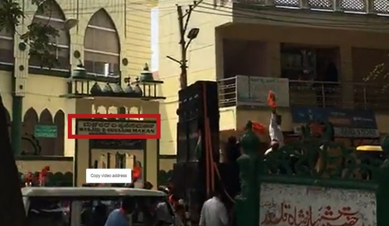 We further analysed the video closely and spotted ‘MASJID E HUSSAINI MAKAN’ written on the building.