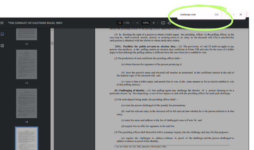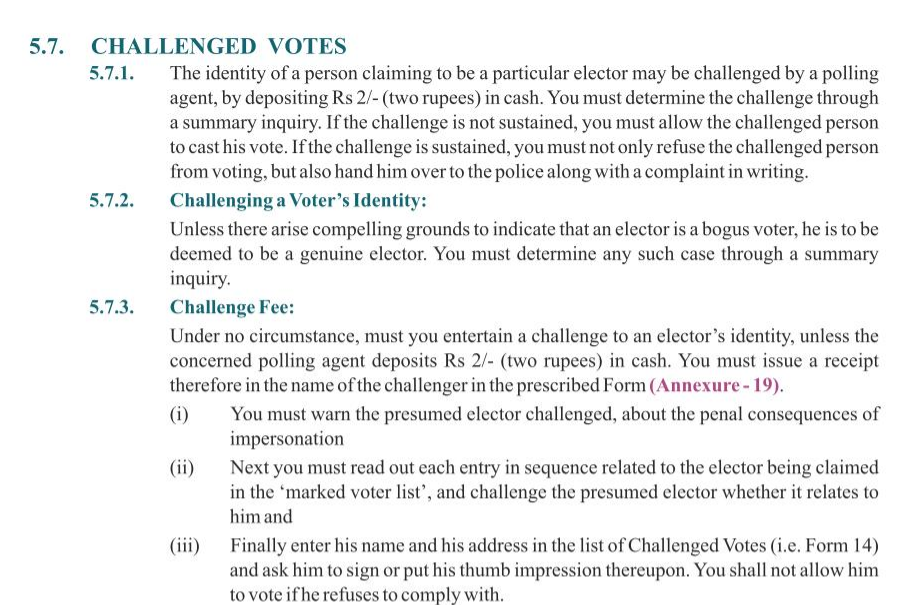 Furthermore, we didn’t find any mention of “Challenge vote” in the Conduct of Election Rules, 1961.
