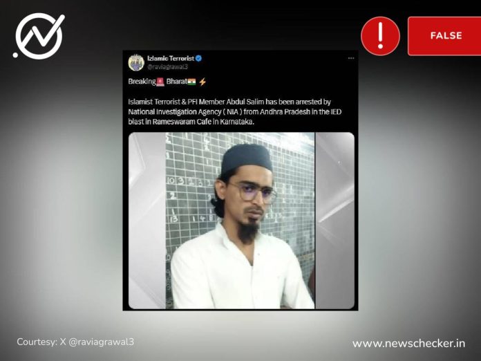 Multiple social media users claimed that a PFI member, identified as Abdul Salim, was arrested by the National Investigation Agency (NIA) from Andhra Pradesh in connection with the Rameshwaram Cafe blast case in Bengaluru on March 1. Newschecker found the claim to be untrue. Salim is an accused in the Nizamabad PFI case involving an anti-India conspiracy by the banned outfit to carry out acts of terror and violence. Read our full fact check here.