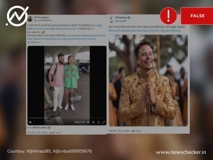 Unrelated Video Of Virat Kohli-Anushka Sharma & AI Image Of Elon Musk Falsely Linked To Anant Ambani’s Pre-Wedding Bash