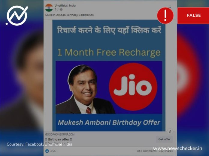 Jio Offering Free Recharge To Celebrate Mukesh Ambani’s Birthday? No, Viral Link Is Fake