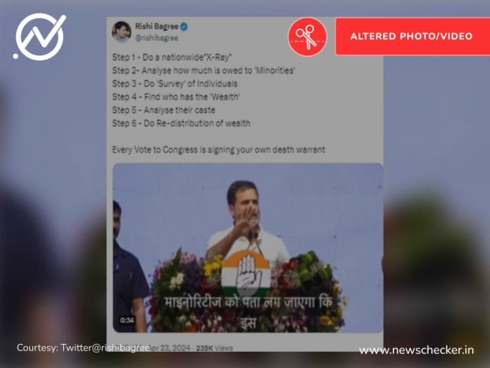 Several social media users are sharing a 42-second video, purportedly showing Congress leader Rahul Gandhi addressing a rally during the ongoing Lok Sabha elections, where he says that the party will conduct a “financial and institutional” survey across the country to ascertain who is in possession of the wealth, following which it will be redistributed to minorities. Newschecker found that an edited video of Congress leader Rahul Gandhi is being circulated with a misleading narrative around his “wealth redistribution” idea. Read more here.