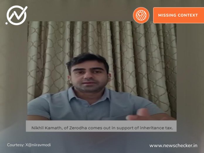 Amid the ongoing political row over Congress leader Sam Pitroda’s comments on Inheritance tax, a video of Zerodha Co-founder Nikhil Kamath advocating for the tax on ancestral wealth has surfaced on social media platforms. Multiple social media users shared the video claiming that Kamath has “come out in support of the tax.” Newschecker found that the video is over two-year-old, and has been misleadingly shared as recent amid Inheritance Tax row. Read more here.