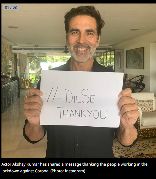 Lokmat Times report, Akshay Kumar thanked Corona warriors, (9th April, 2020)