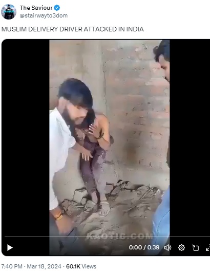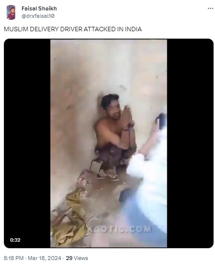 Several social media users are sharing a 39-second video, claiming that it shows a Muslim delivery driver being brutally assaulted by a group of men. The archived version of the tweet can be seen here.