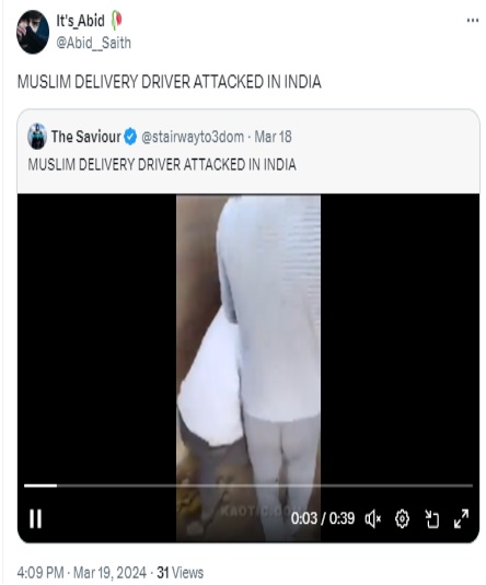 ‘Muslim Delivery Partner’ Attacked? No, Viral Video Given False Communal Spin