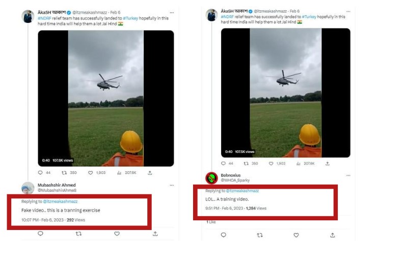On scanning through the comment sections of the post carrying the viral video, we spotted multiple users pointing out that the clip was from a training exercise.