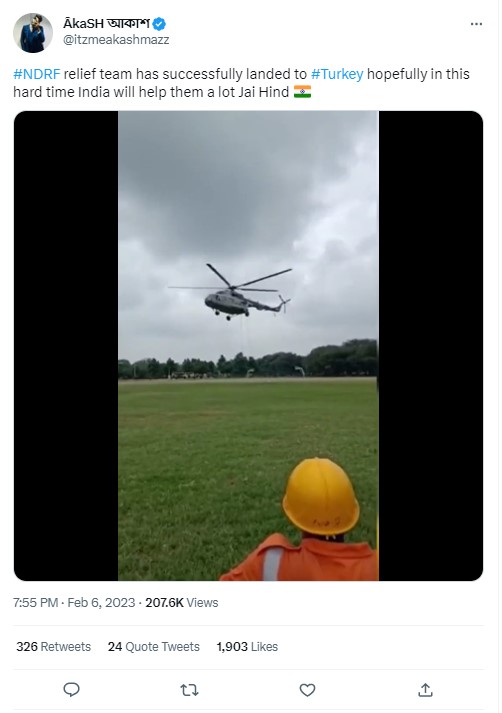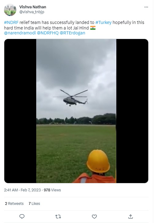 Multiple Twitter users shared the 45-second-long-clip with the caption, “#NDRF relief team has successfully landed to #Turkey hopefully in this hard time India will help them a lot Jai Hind.”