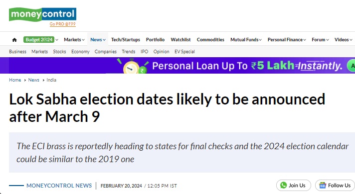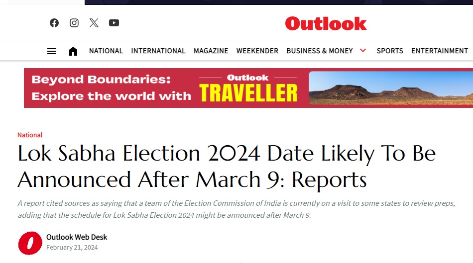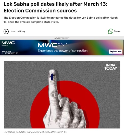 Newschecker first ran a keyword search for “Lok Sabha election dates”, which did not throw up any news reports announcing the schedule, nor an official notification. We, however, came across multiple reports from major media outlets, seen here, here and here, quoting Election Commission sources, which stated that the poll body is likely to announce the dates for Lok Sabha elections after March 9-March 13.