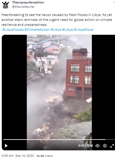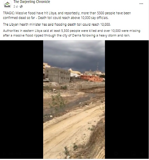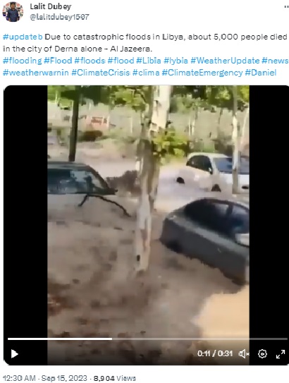Several social media users are circulating multiple videos, purportedly of the devastating floods in Libya, particularly Derna, where at least 11,000 people have been killed. The videos can be seen here, here and here.