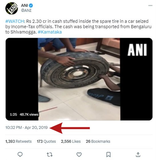 Hence, a 2019 video showing a tyre stuffed with currency notes during an IT raid is falsely being linked to the 2023 Karnataka Elections.