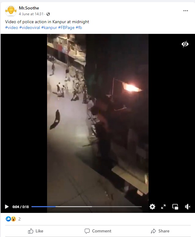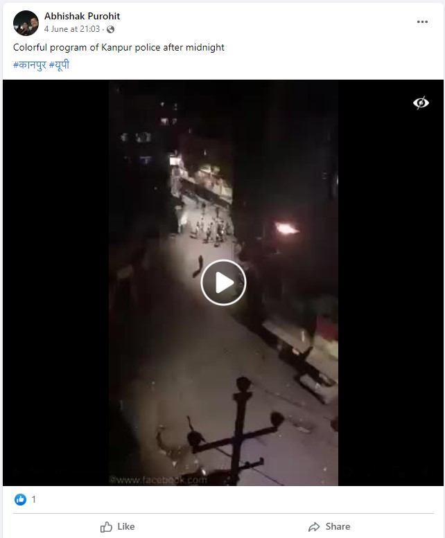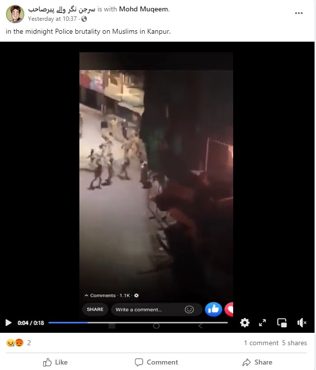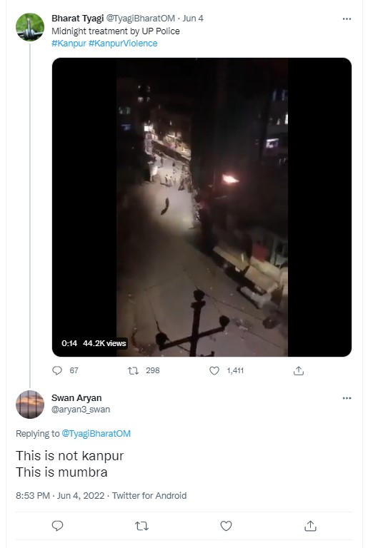 Twitter user ‘@TyagiBharatOM’ who identifies himself as a ‘Proud BJP Member’ was among the users who shared the eighteen-second video with the caption “Midnight treatment by UP Police #Kanpur #KanpurViolence” on June 4, 2022. The video has been viewed over 44k times and retweeted over 280 times so far. An archived version of the tweet can be seen here.
