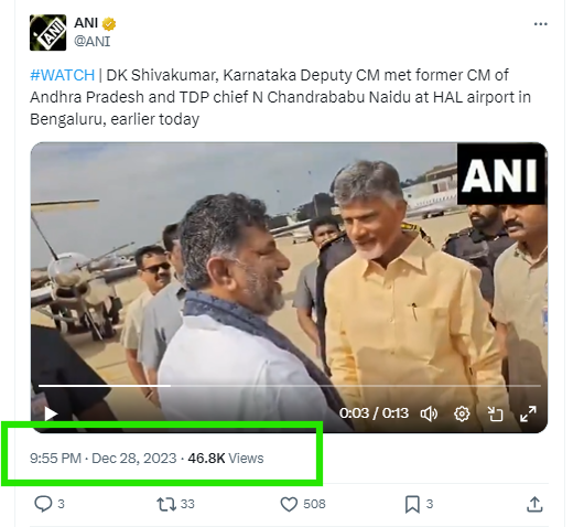 Multiple social media users shared the footage claiming, “DK Shivkumar attempting to lure Chandrababu Naidu at Delhi Airport (sic)”