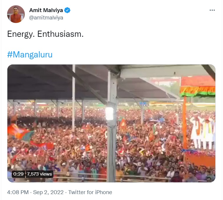 Later, on September 2, Amit Malviya tweeted the same video, with the caption “Energy. Enthusiasm. #Mangaluru”. This tweet was in context of the PM’s recent visit to Mangaluru on September 2, 2022, to lay the foundation stone for developmental projects worth ₹3,800 Crores.