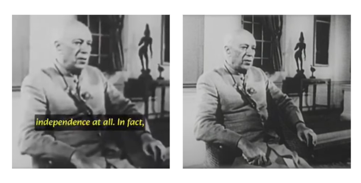 We also heard talking about the Muslim League, and partition. Taking a clue, we looked up keywords “Nehru,” “interview,” “partition” and “Muslim League” on YouTube, which led us to a video by Prasar Bharati Archives, dated May 27, 2024. Its description stated, “Prasar Bharati Archives presents the last interview of the then Prime Minister Jawahar Lal Nehru speaking about the situation of Independence and Partition. “