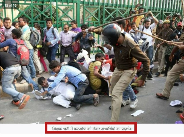 According to the Amar Ujala report, dated November 2, 2018, the police had lathi-charged at the protestors who were demanding a reduction in cut-off for the recruitment to the post of assistant teachers and to fill in the vacant posts.