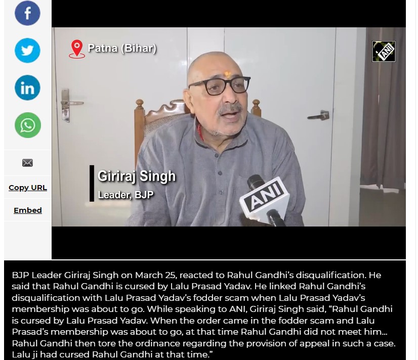 While Singh claimed, “Rahul Gandhi is cursed by Lalu Prasad Yadav. When the order came in the fodder scam and Lalu Prasad’s membership was about to go… Rahul Gandhi then tore the ordinance regarding the provision of appeal in such a case…”