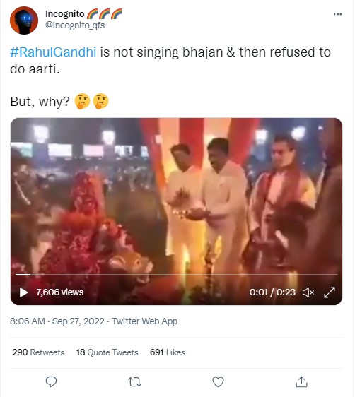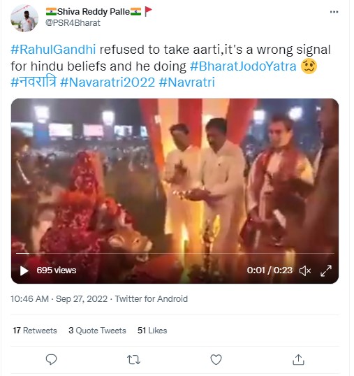 Several Twitter users shared a 23-second-long-video claiming to show the Congress leader ‘refusing to do Aarti’.