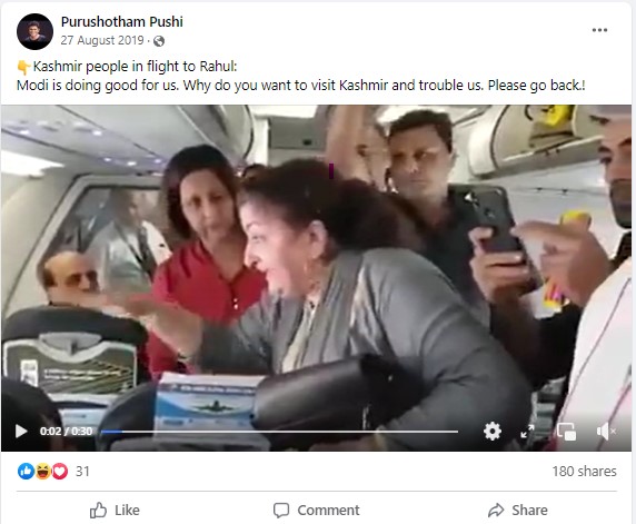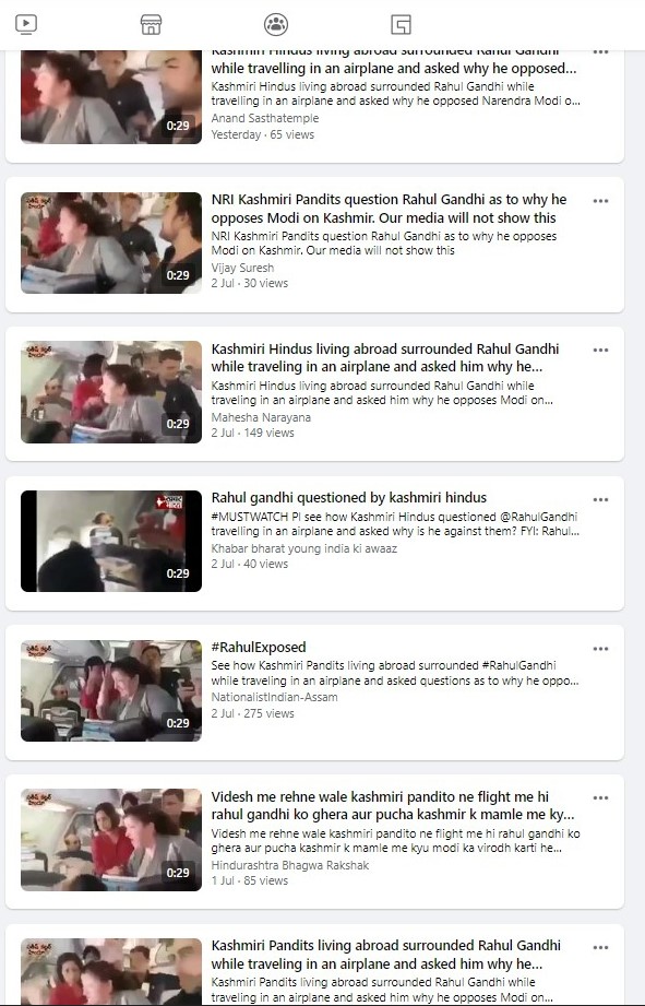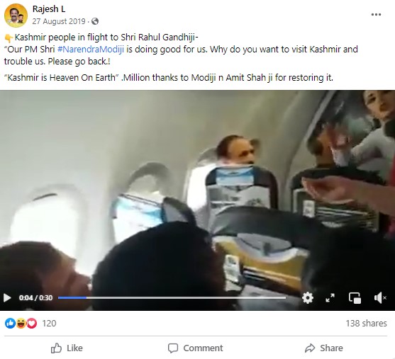 Such misleading posts had gone viral in 2019 as well. A simple keyword search for “Rahul Gandhi Flight Kashmiri” on Facebook led us to several posts carrying the same video with the caption, “Kashmir people in flight to Rahul:Modi is doing good for us. Why do you want to visit Kashmir and trouble us. Please go back.!”