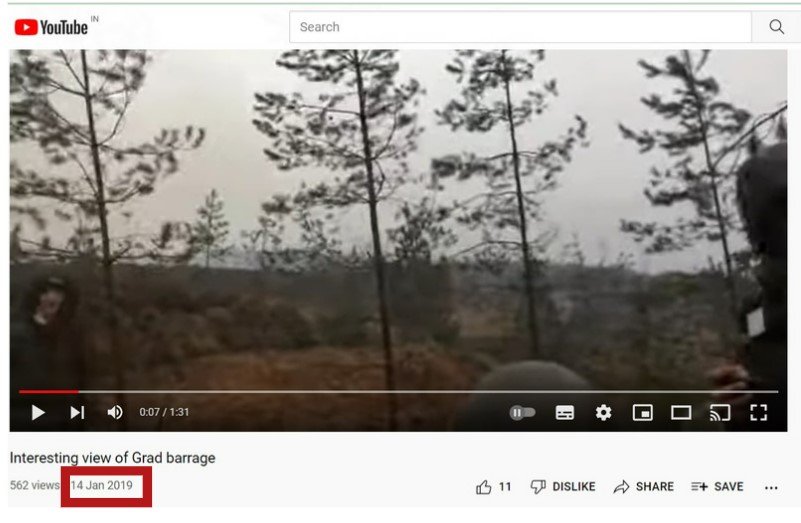 On conducting a Yandex image search on other keyframes of the viral clip we came across a video uploaded on a YouTube channel called ‘wildhunt espada’ on January 14, 2019, with the caption ‘Interesting view of Grad barrage.