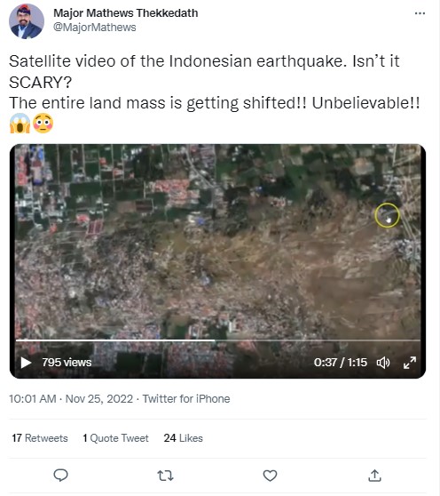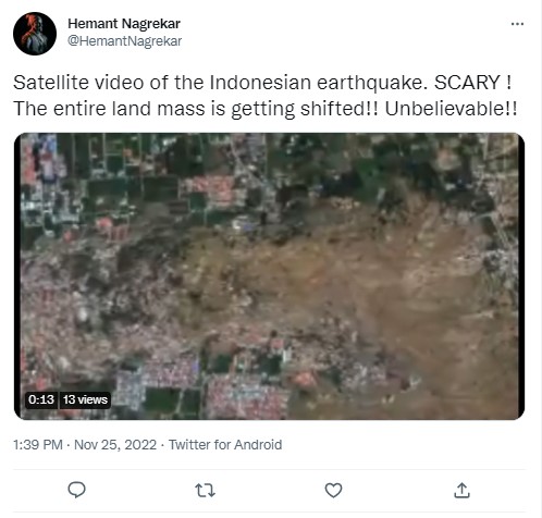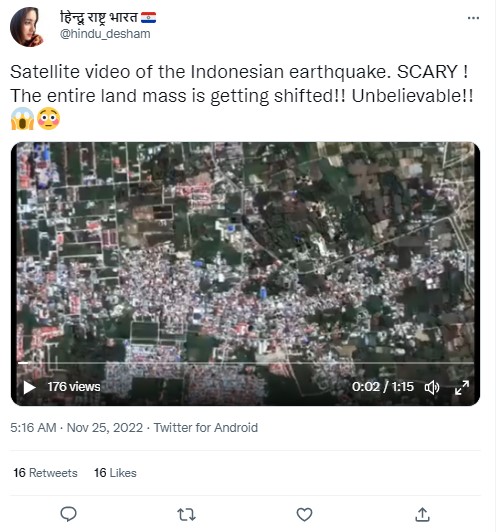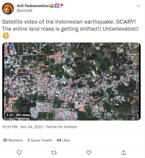 A 5.6 magnitude quake struck Cianjur town in West Java, Indonesia earlier this week killing at least 272 people, injuring scores, and displacing thousands of others. The rescue operation is still underway in the earthquake-prone archipelago. Several videos showing the aftermath of the disaster that jolted Indonesia on Monday are being widely shared on social media. In this backdrop, a video claiming to show the satellite view of land shifting during the Indonesian earthquake is going viral on social media platforms.