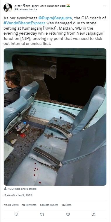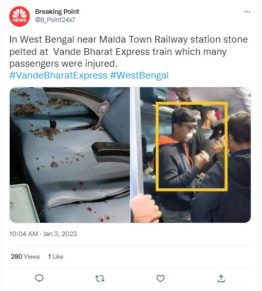 News outlet Republic Bangla also did a report on the incident which was streamed on their official YouTube channel on January 3, 2023. The description of the video read, “Purulia Express News LIVE. Not only the Vande Bharat Express, but also the Purulia Express at Panskura on the first day of the year. The window panes of room D3 were broken by stones. Panicked passengers on social media.”