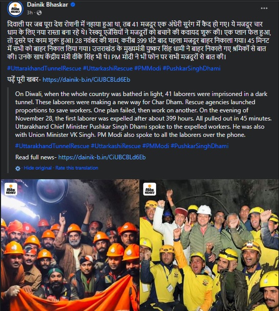 The image was published by many publications including Hindustan Times on their Delhi edition crediting the image to PTI, and Dainik Bhaskar on their Facebook page.