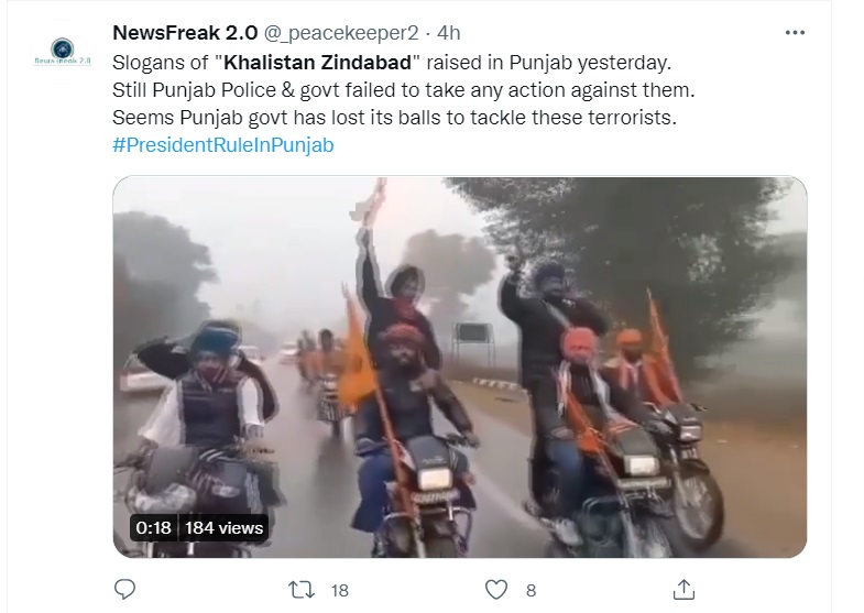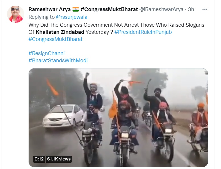 A day after PM’s Punjab visit was abruptly cut short and his Ferozepur rally was cancelled over an alleged security breach, several social media users, on Thursday, shared a video of young men in Sikh turbans, riding motorbikes, shouting ‘Khalistan Zindabad’. Users alleged that the video was from yesterday and showed supporters of Khalistan raising slogans with impunity amidst the PM’s Punjab visit, and blamed the Congress government in the state for taking no action. Newschecker has found that the video was from December and is not from the day of PM’s Punjab visit as is being claimed.