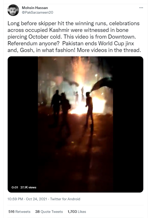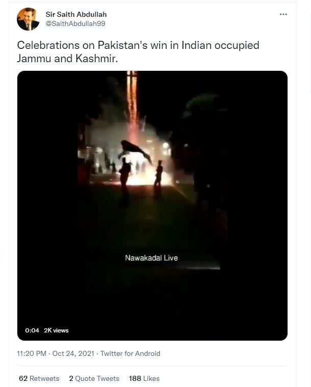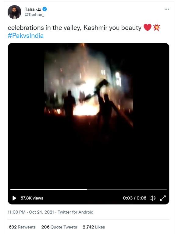 Many users claimed hypocrisy, questioning ban on crackers during Diwali if it could be used to celebrate Pakistan win, while others justified the abrogation of Article 370 citing the videos.