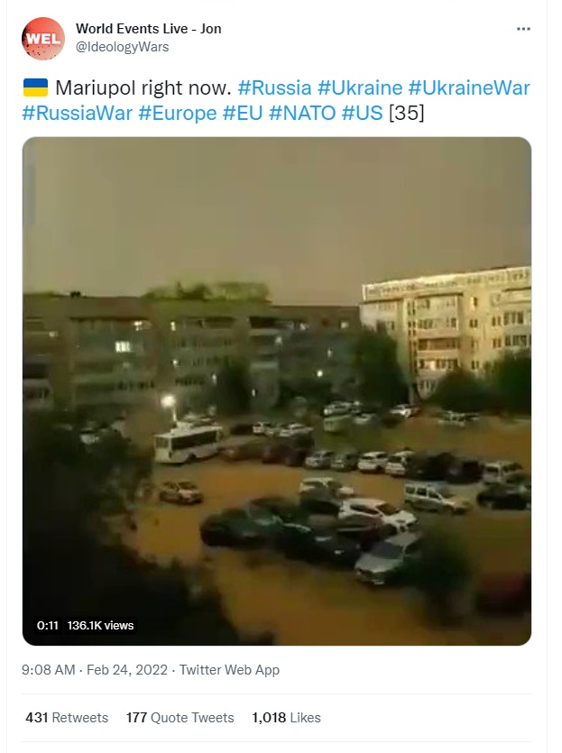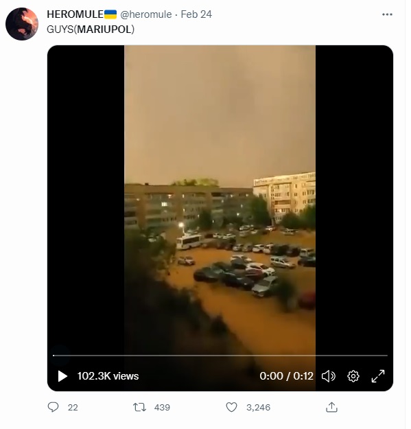 The video claiming to show the Russian attack on the city of Mariupol is actually a lightning strike that took place earlier in January.