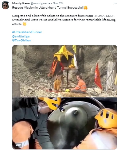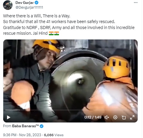 Several social media users are circulating a video, claiming to show the successful rescue of 41 workers from the partially collapsed Silkyara tunnel in Uttarakhand, where they were trapped for 17 days.
