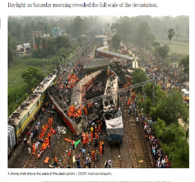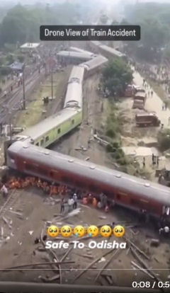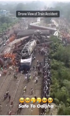 We also came across multiple news reports featuring similar aerial shots of the site, as seen in the viral video, confirming that it is of the Odisha train disaster. The reports stated that drone footage showed large crowds of locals helping at the scene.