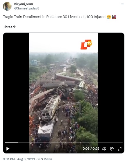 Newschecker noticed that the accident site shown in the viral video seemed to have involved more than one train, contradicting the news reports about the Pakistan tragedy. Also, the viral clip ends with the closing credits of Odisha TV, indicating that it may have been a news report on the deadly three-train collision in Odisha’s Balasore on June 2, 2023, which claimed the lives of at least 293 people.
