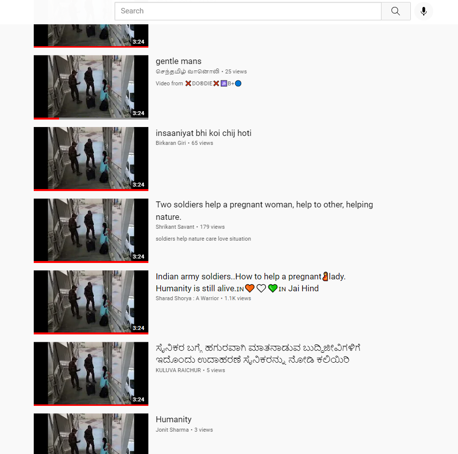 The video is being shared with captions such as, ‘I salute our soldiers,’ and ‘Humanity is still alive…this is what a soldier is.’