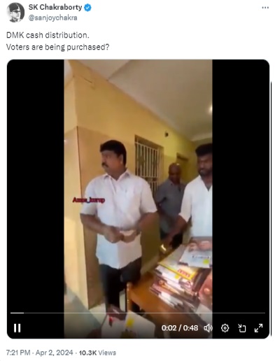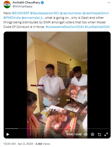 DMK is violating the Model Code of Conduct by distributing cash and gifts to voters.