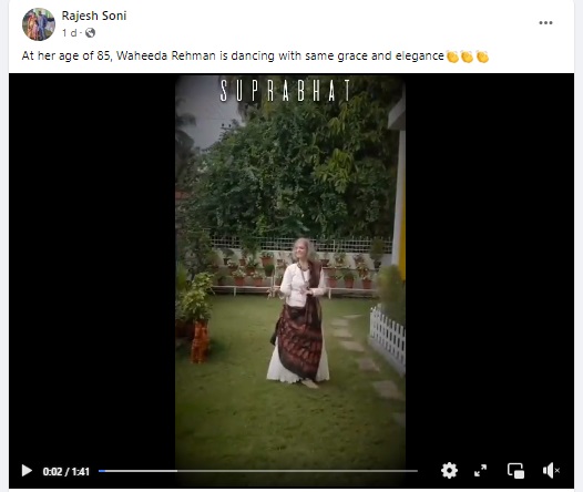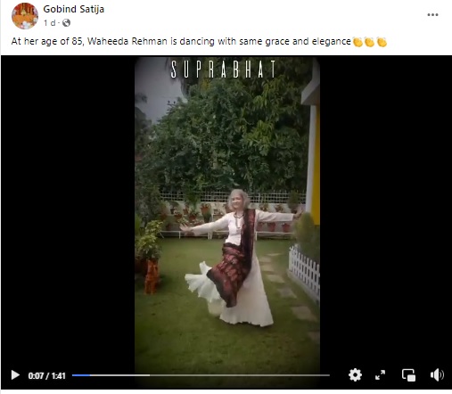 Viral video of a senior citizen dancing to an old Bollywood song has been misattributed to actor Waheeda Rehman.