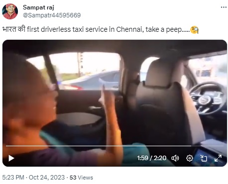 Several social media users are circulating a video, claiming that it shows a senior citizen speaking in Tamil, using the world’s first “driverless taxi service” in Chennai, India. We received this claim on our Whatsapp tipline (9999499044), too, requesting us to fact-check it.