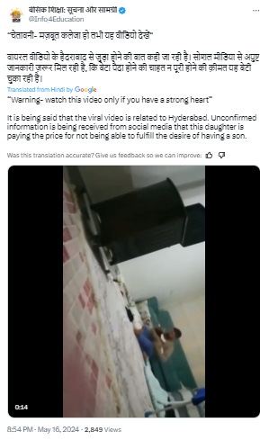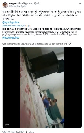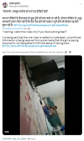 A disturbing video showing a man brutally thrashing an infant has gone viral on social media with users claiming the incident to be from Hyderabad. According to the claims, the man was seen venting his anger on his daughter as he had wanted a son.