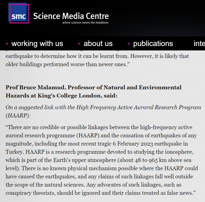 During the research we came across a study report about Turkey Syria Earthquake on a London based Science Media Centre website wherein scientists have clearly denied of having any human or technology involvement in earthquakes including the Turkey earthquake.