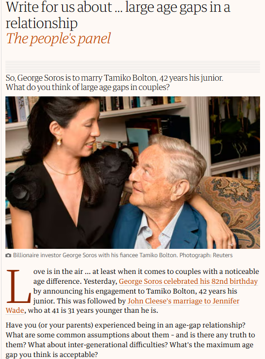 Newschecker first ran a reverse image search, which led us to this Guardian article, dated August 13, 2012, featuring the same photo with the caption reading, “Billionaire investor George Soros with his fiancée Tamiko Bolton”. “Yesterday, George Soros celebrated his 82nd birthday by announcing his engagement to Tamiko Bolton, 42 years his junior,” read the article.