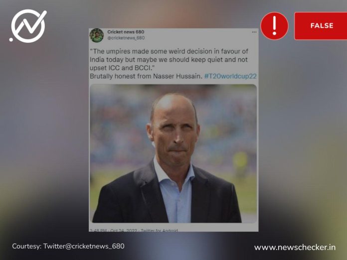 Following India’s thrilling last-ball victory over Pakistan in a group-stage clash at the ICC Men’s T20 World Cup in Melbourne on Sunday, a quote attributed to former England captain Nasser Hussain is doing the rounds on social media. “The umpires made some weird decision in favour of India today but maybe we should keep quiet and not upset ICC and BCCI,” the viral tweets and FB posts claim Hussain as saying post the nail-biting final over of the game that involved a few crucial umpiring decisions. Read more here.