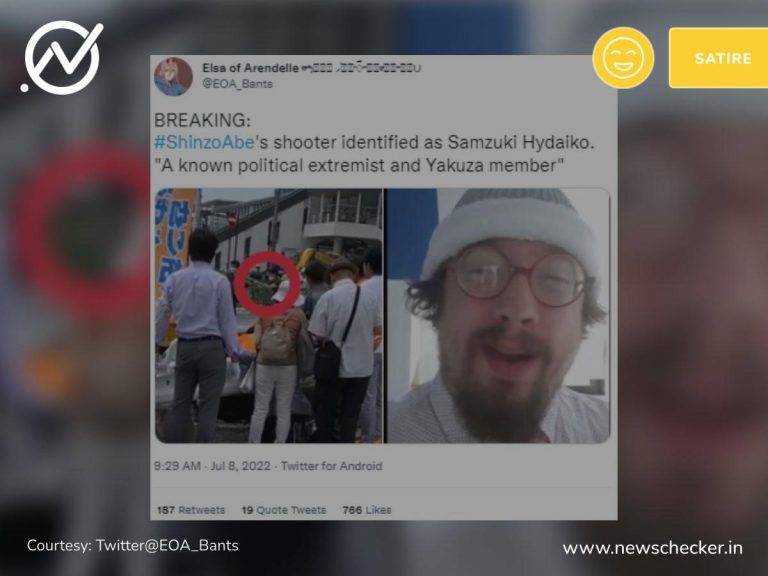 Former Japanese Prime Minister Shinzo Abe, was shot and killed on July 8, 2022 while making a speech in the Japanese city of Nara. After being shot, the ex-prime minister lost consciousness and died as a result of his wounds. A 41-year-old suspect is currently in police custody after security personnel at the site subdued the alleged gunman. In light of these events, several images of a man named Samzuki Hydaiko who is allegedly a member of the Japanese crime syndicate Yakuza are going viral on social media along with the claim that he is the alleged gunman who shot former Japanese Prime Minister Shinzo Abe. Newschecker found these claims to be untrue. Read more here.