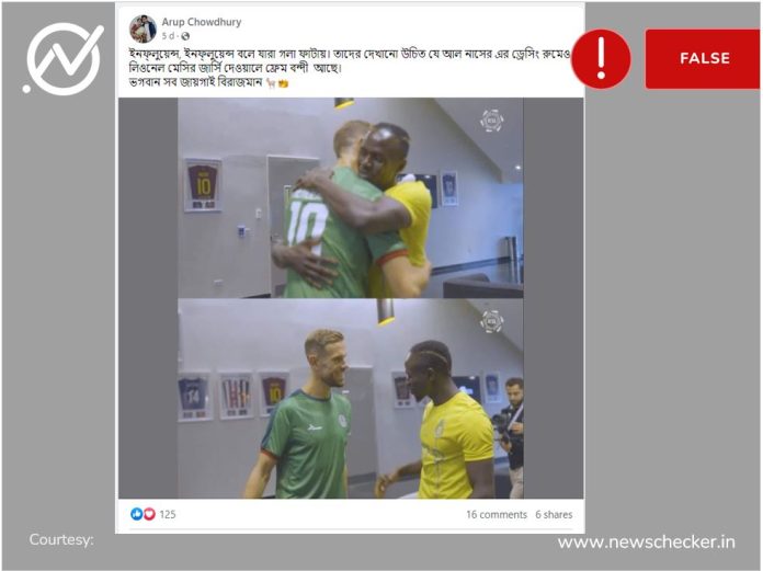 A picture showing footballers Jordan Henderson and Sadio Mane, former teammates of English Premier League club Liverpool FC, hugging each other has gone viral on social media in recent days, with users claiming that the image was clicked at the locker room of Al-Nassr football club, of which Ronaldo is a player. Newschecker’s investigation has found that the claim that Lionel Messi’s jersey was displayed at Al-Nassr’s locker room, is not true. Read more here.