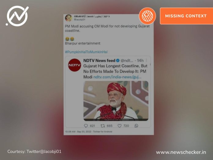 Several social media users shared a screenshot of a tweet by NDTV, where PM Narendra Modi purportedly criticised the “lack of efforts” to develop Gujarat’s coastline. Twitter users were quick to point out that the PM held the post of the Chief Minister of Gujarat from 2001 to 2014, along with being in power in the Centre since 2014. Newschecker found that PM Modi criticised the previous non-BJP governments for neglecting Gujarat’s coastline. He was misquoted in the NDTV tweet. Read more here.