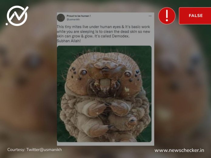 An image of an organism is going viral on social media, with users claiming it to be the micrograph of a mite called Demodex that lives on the human face and eyelashes. Demodex is a microscopic eight-legged organism that lives in or near hair follicles of mammals and typically comes out at night to feast on dead skin cells before retreating to their hiding spots to lay eggs. Newschecker found that the viral image claiming to show “Demodex mite” is actually a micrograph of a silkworm. Read more here.