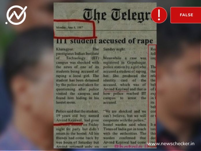 Newspaper Clipping Claiming Arvind Kejriwal Was Accused Of Rape In 1987 Found To Be Fake