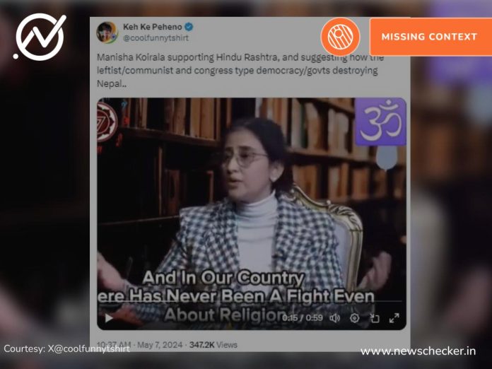 Several social media users are circulating a clip of an interview of Nepalese actor Manisha Koirala, who recently collaborated with director Sanjay Leela Bhansali after 28 years for his OTT debut Heeramandi. According to the claims and the subtitles provided in the video, the Bollywood actor is supporting Hindu Rashtra and alluding to how the “leftist/Communist and Congress type democracy/govts destroyed Nepal”. Newschecker found that a clip from an interview with Manisha Koirala ahead of Nepal general elections in 2022 has been falsely linked to 2024 Lok Sabha elections. Read more here.